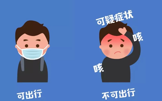 1、出行前,若無(wú)可疑癥狀(發(fā)熱、咳嗽、咽痛、胸悶、呼吸困難、乏力、惡心嘔吐、腹瀉、結(jié)膜炎、肌肉酸痛等),可正常出行。